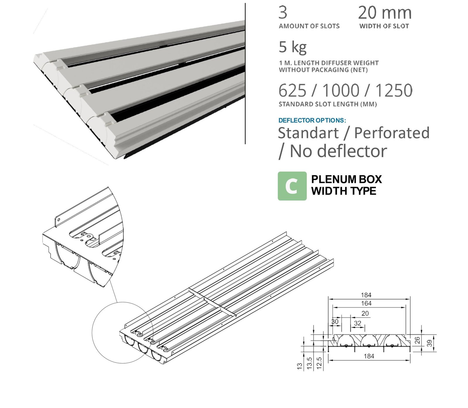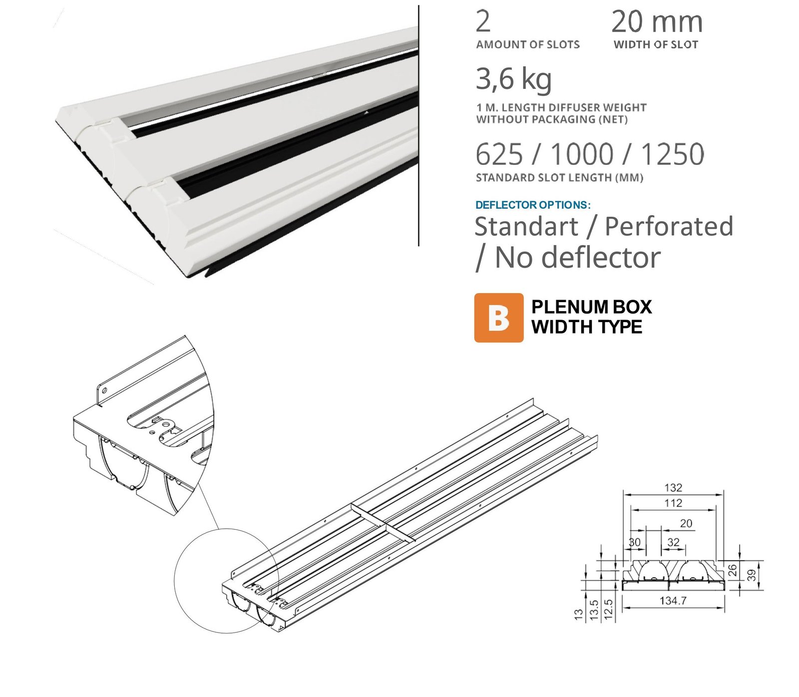 The Ventmann PERFORMANCE Linear Slot Diffuser combines elegant and adaptable design features with a specially